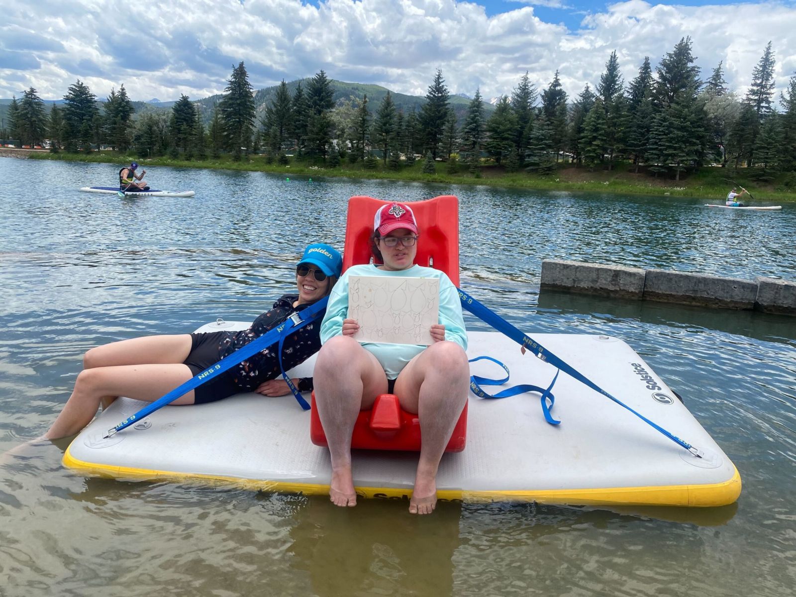 Thayla and Daniele soak up the sun at adaptive paddleboarding.